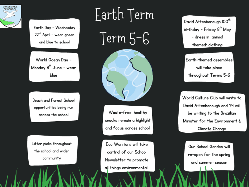 Cradle Hill School in Seaford has a range of activities planned for their Earth term in term 5 - 6 to connect the school community to our natural world. Click on the link to see what they have planned.